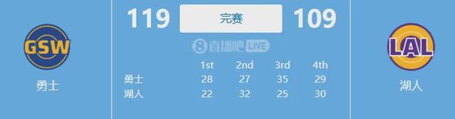 最终全场打完,勇士119-109击败湖人,拿下新赛季开门红。