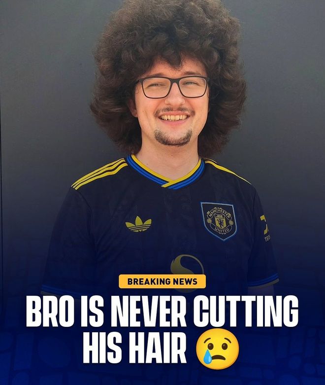 一英国老哥一年前发誓曼联五连胜就剪头,如今秀发远超费莱尼