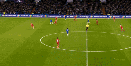 理论上,遇到切尔西这样连续换上替补后卫的时候,就应该直接将压力施加到后卫线身上,通过不断对抗、冲刺来打这些替补球员跟不上节奏的问题,但利物浦的前场球员恰好不是这种类型的进攻球员,所以在下半场末段,利物浦已经出现了弹不出去的问题: