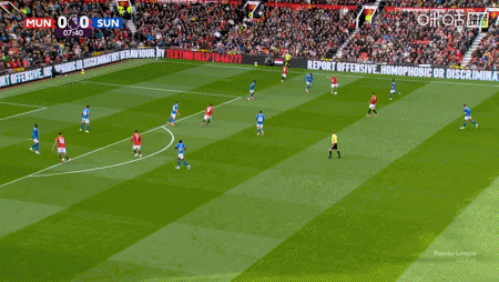 在后防逐步稳定的基础之上,曼联的前锋们也是有了更多的信心去制造机会。开场第8分钟,曼联通过一次大规模的边路转换以及边中结合策略,靠着芒特一停、一射、一射门成功完成了首开记录的实践。对于芒特来说,这个进球实在是太重要了,虽然他的庆祝略显轻描淡写的,不过在回归之后能够帮助完成这样的进球,这不仅是解决了主帅压力问题,也很好的给自己的回归吹响了号角。