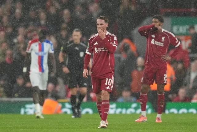 利物浦的困境愈发严峻,他们在联赛杯主场0比3负于水晶宫,止步16强。红军各项赛事近7战已输6场,这也是利物浦自1934年2月(足总杯0-3博尔顿)以来首次在安菲尔德的国内杯赛0-3输球。此役,斯洛特大幅轮换阵容,伍德曼和基兰·莫里森完成一线队首秀。